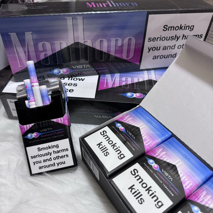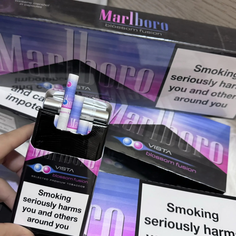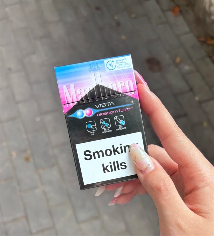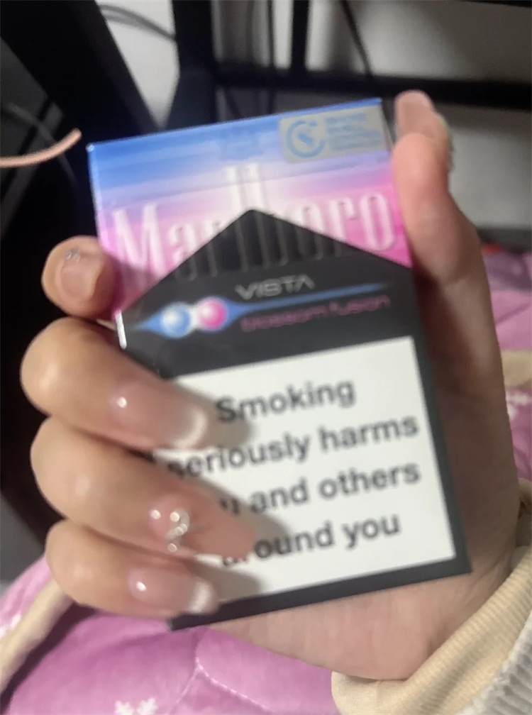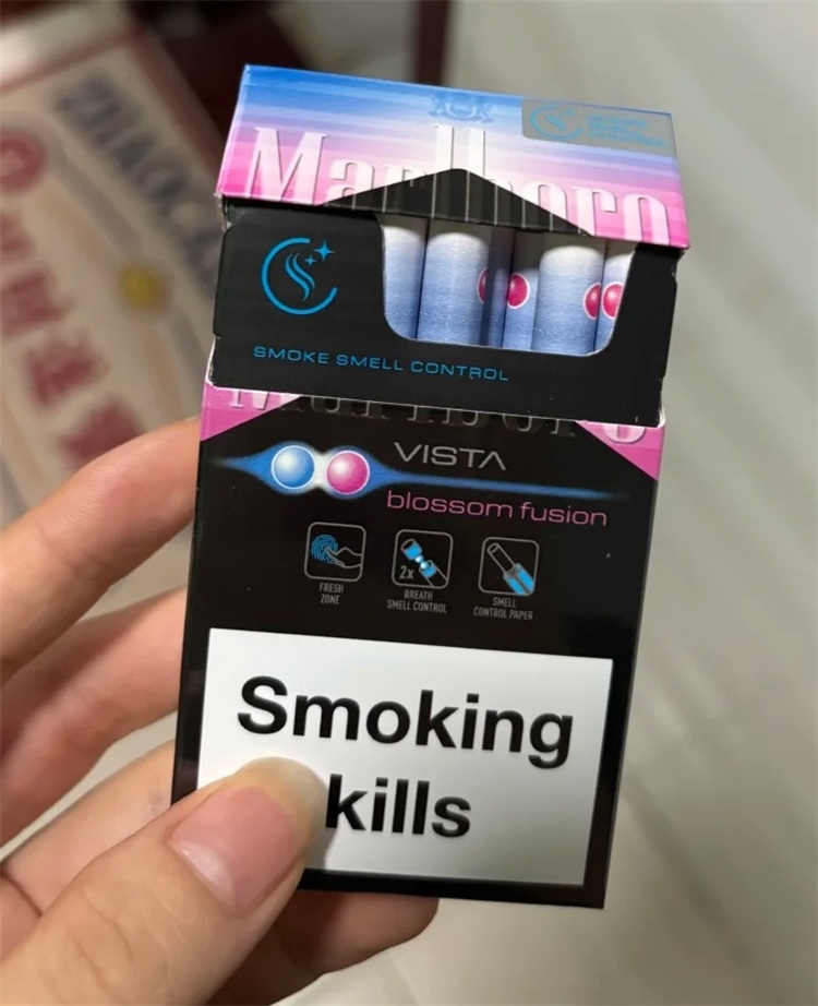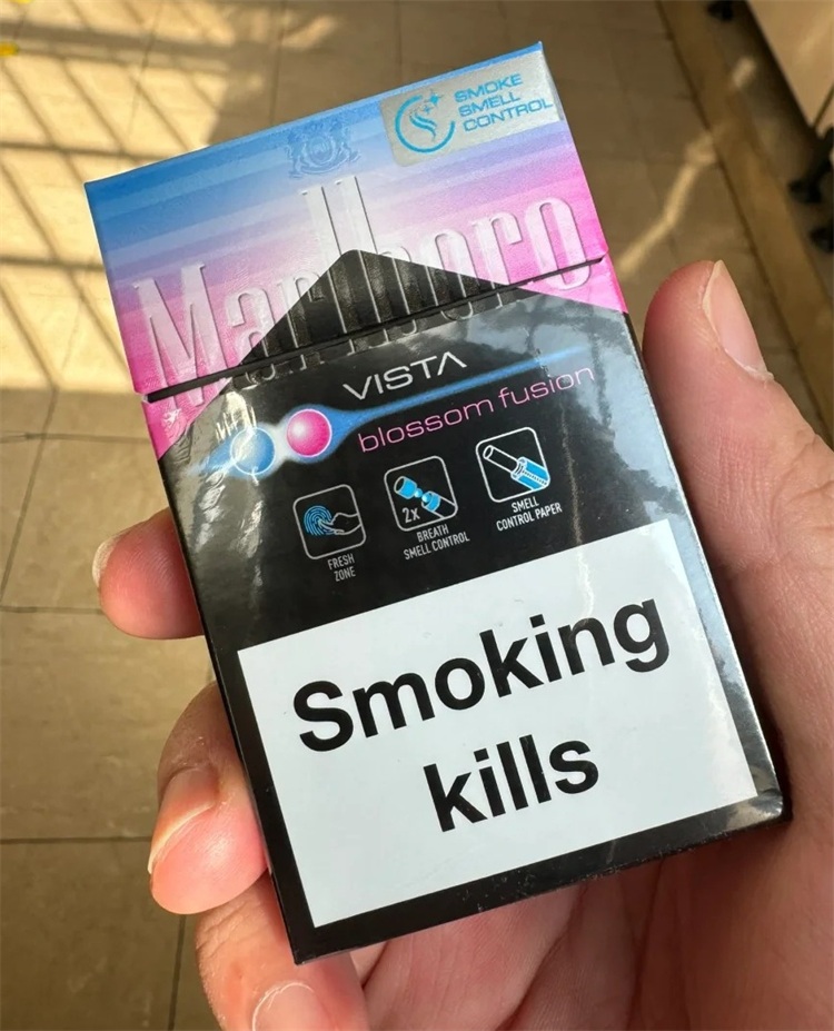 亚太免税版万宝路樱花爆珠(Marlboro Vista Blossom Fusion)以黑色为主调搭配粉色樱花元素,烟盒设计简约时尚,属于万宝路Vista系列,其焦油量为5mg,烟碱量0.4mg,烟支长度84mm,为混合型香烟。官方参考价约为35元/包(条装330元),但实际市场售价可能因渠道不同存在浮动,例如有用户反馈在小卖部以38元购得。