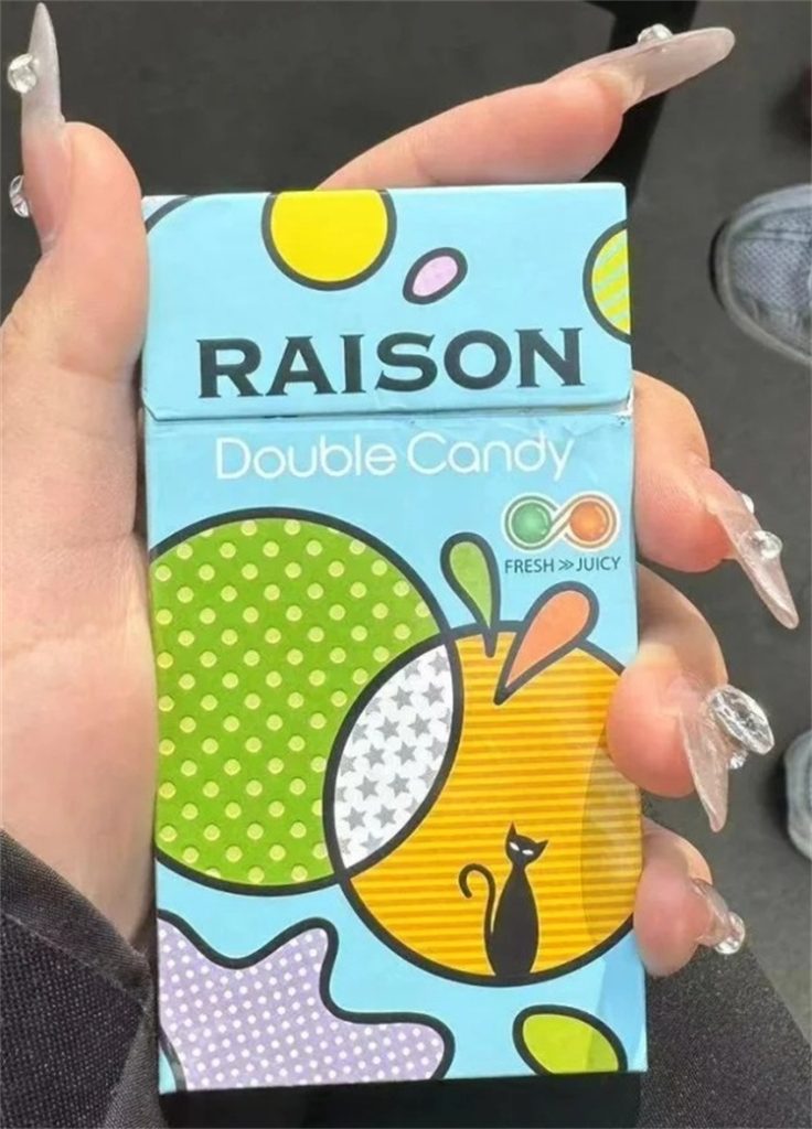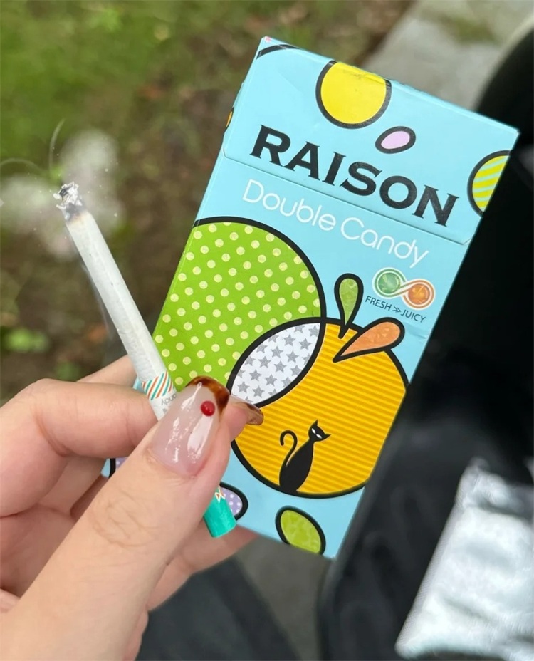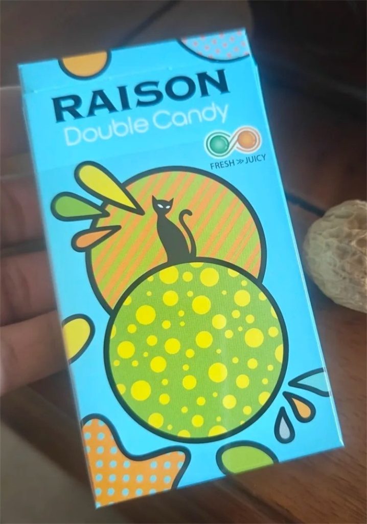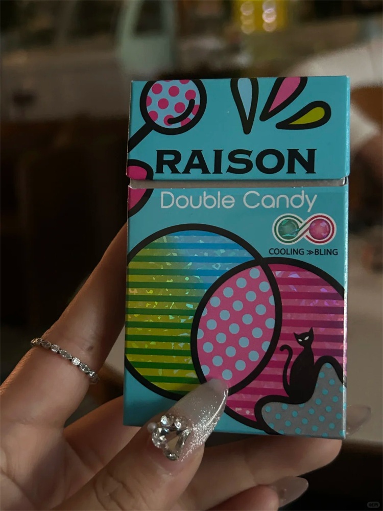 铁塔猫(RAISON)糖果双爆珠(Raison Double Candy)以其鲜明的蓝色卡通包装和独特的双爆珠设计吸引眼球,尤其受年轻女性青睐。这款烟焦油量为3mg,烟碱量0.2mg,属低焦油范畴,提供粗支(84mm)和细支(100mm)两种规格。其市场参考价粗支约为25-30元/包(条装250-300元),细支约为15-30元/包(条装150-250元)。