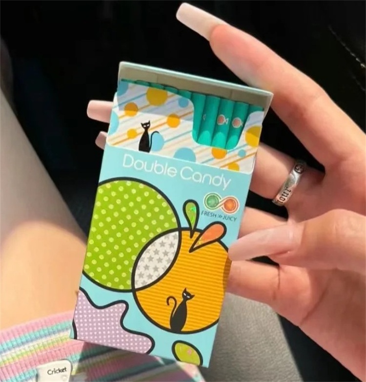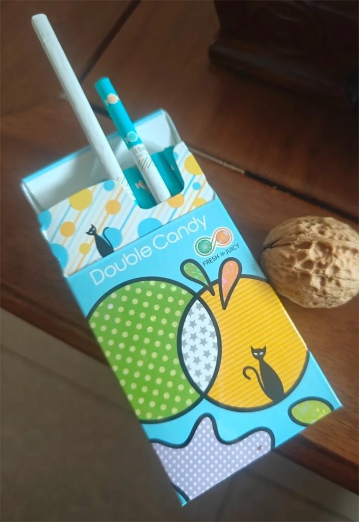 开盒后,扑面而来的是强烈的甜香味,有用户形容类似草莓味大大泡泡糖。烟支上有两颗爆珠,根据设计,通常上方为糖果味爆珠,下方为果味(水蜜桃草莓)与薄荷爆珠。