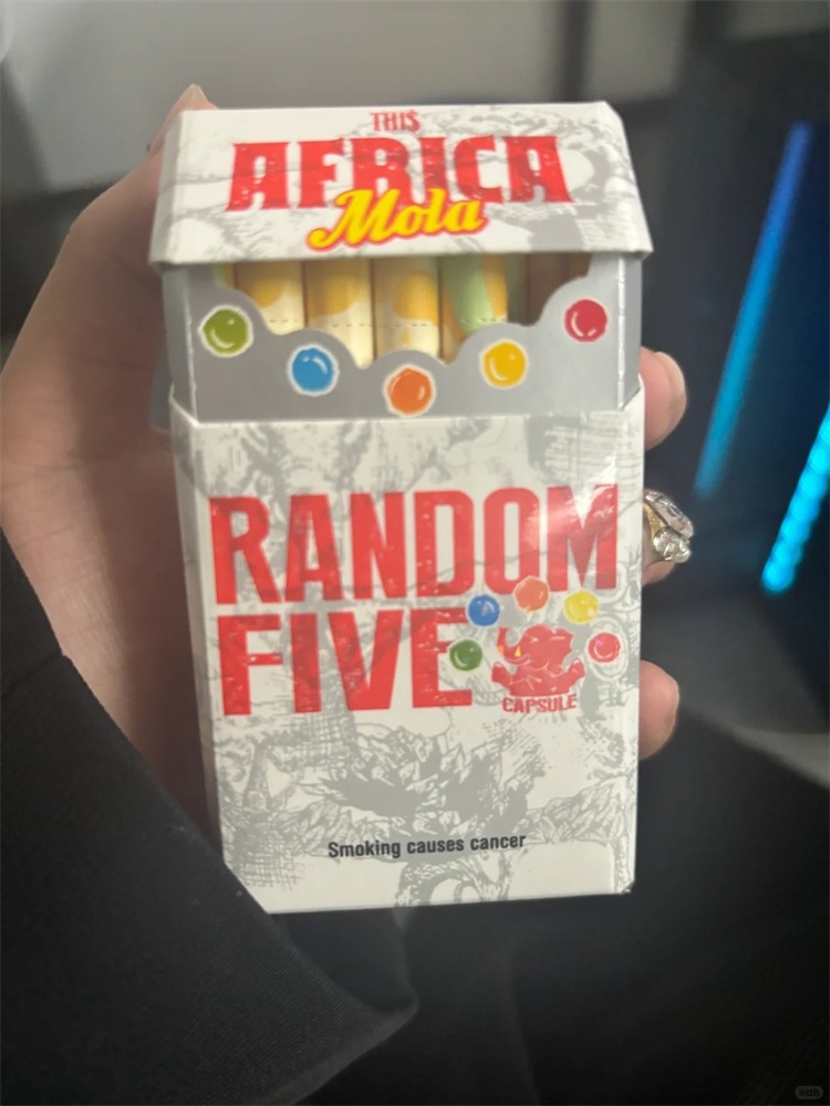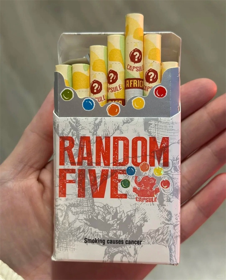 星空ZEST象之谜五味爆珠(其产品全名或标识常为 THIS AFRICA Mola RANDOM FIVE CAPSULE )以其独特的“一盒五随机味”设计吸引了大量追求新奇体验的年轻消费者。这款来自韩国的爆珠香烟,烟盒上常印有彩色大象图案,“谜”就在于你每次抽出一支烟时,并不知道它将是什么口味,充满了随机开启的惊喜感。其市场参考价约为25元/包(条装价格约250元),焦油量为5mg,烟碱量0.4mg,属于混合型香烟。